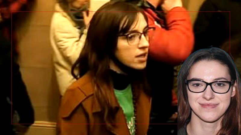 A woman who has been identified as Williams — wearing glasses, a green shirt, brown trench coat and carrying a bag over her shoulder — is seen on video yelling, “Upstairs, upstairs, upstairs,” and pushing people toward Pelosi’s office.❐